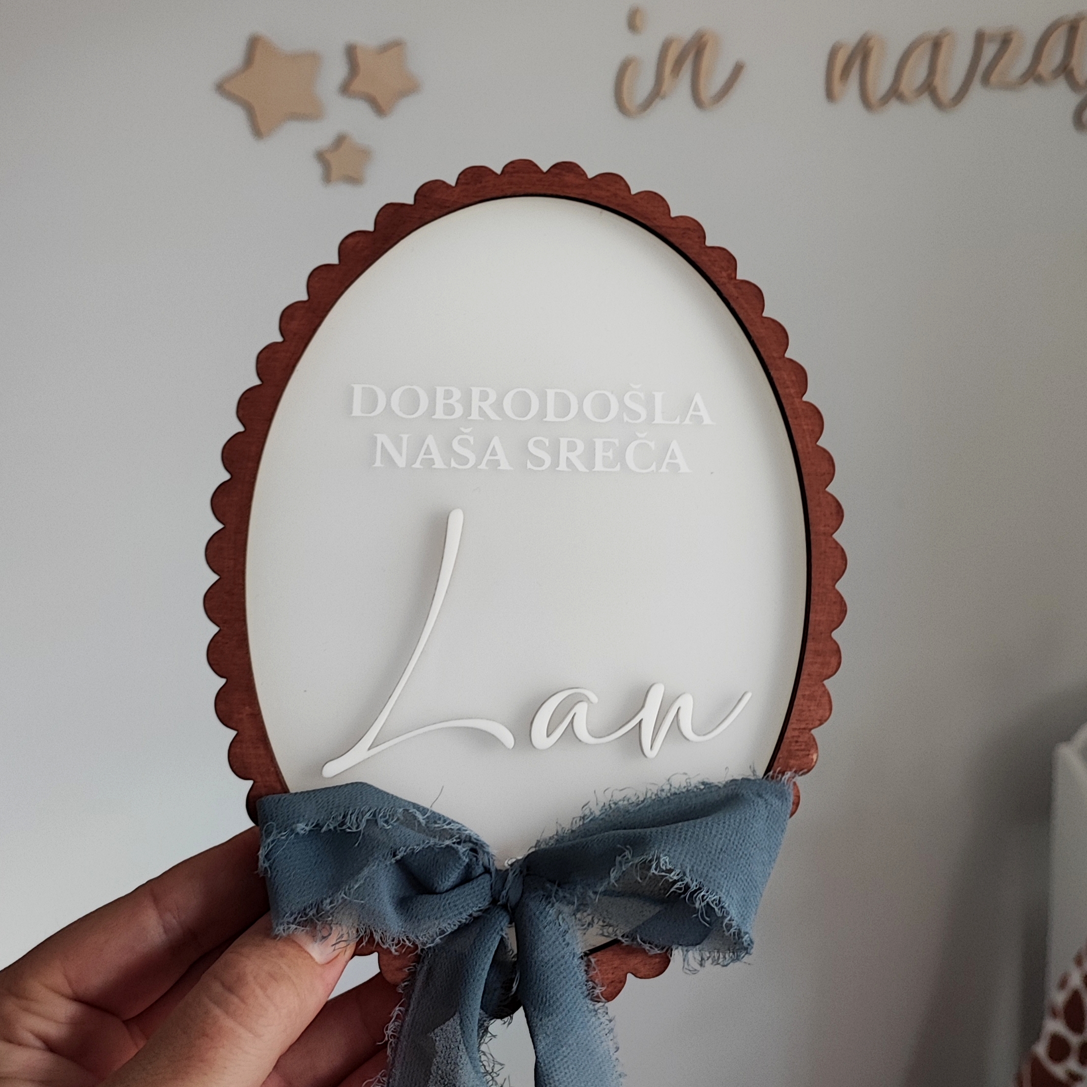 | NAPIS: | Pozdravljen svet moje ime je____________, Dobrodošla naša sreča ____________, Dobrodošla najina sreča ___________ |