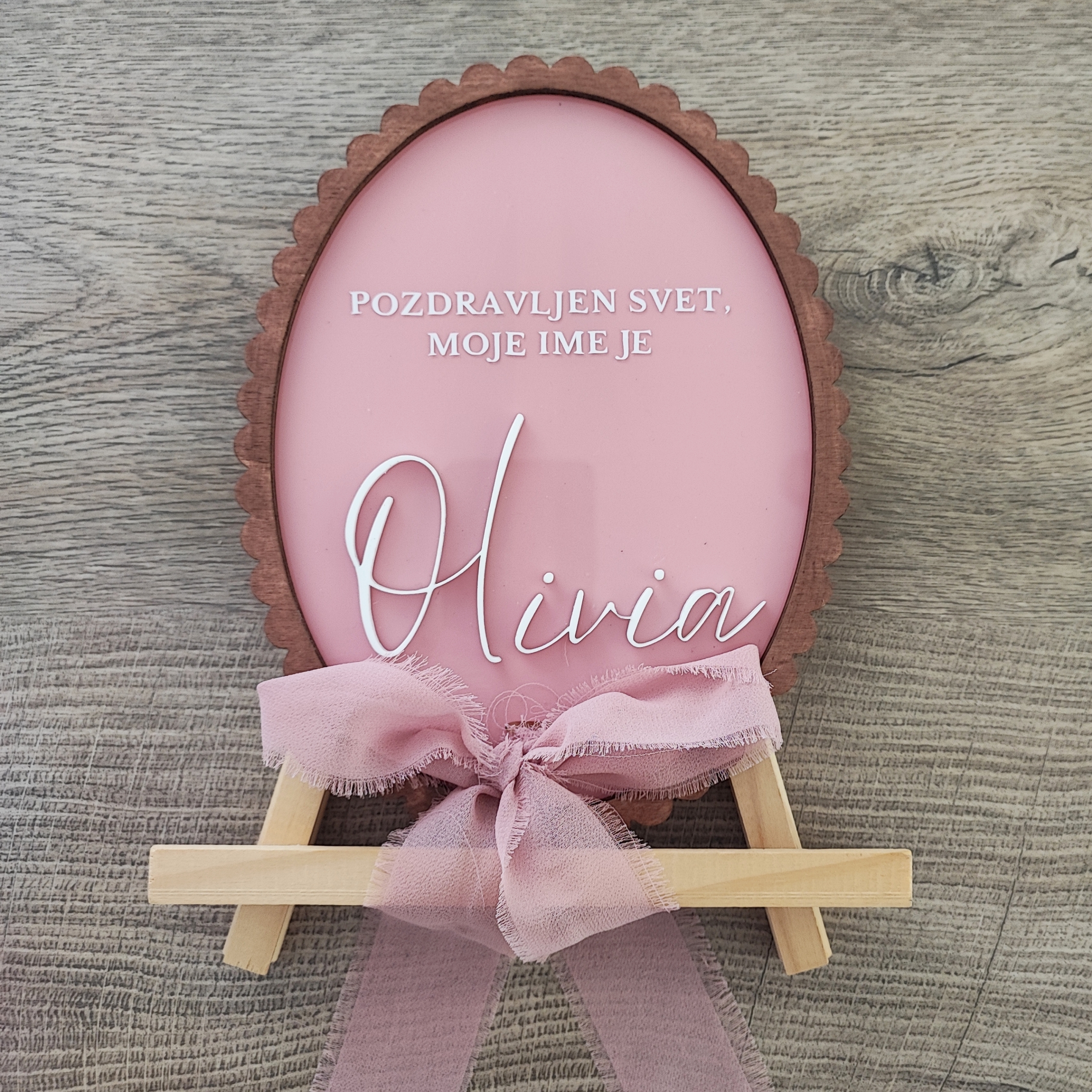 Naše akrilne/lesene tablice so preprost a čudovit način, da z bližnjim delite veselo novico.Za drugačne želje pri napisu nam pišite na info@adelintrgovinacom.